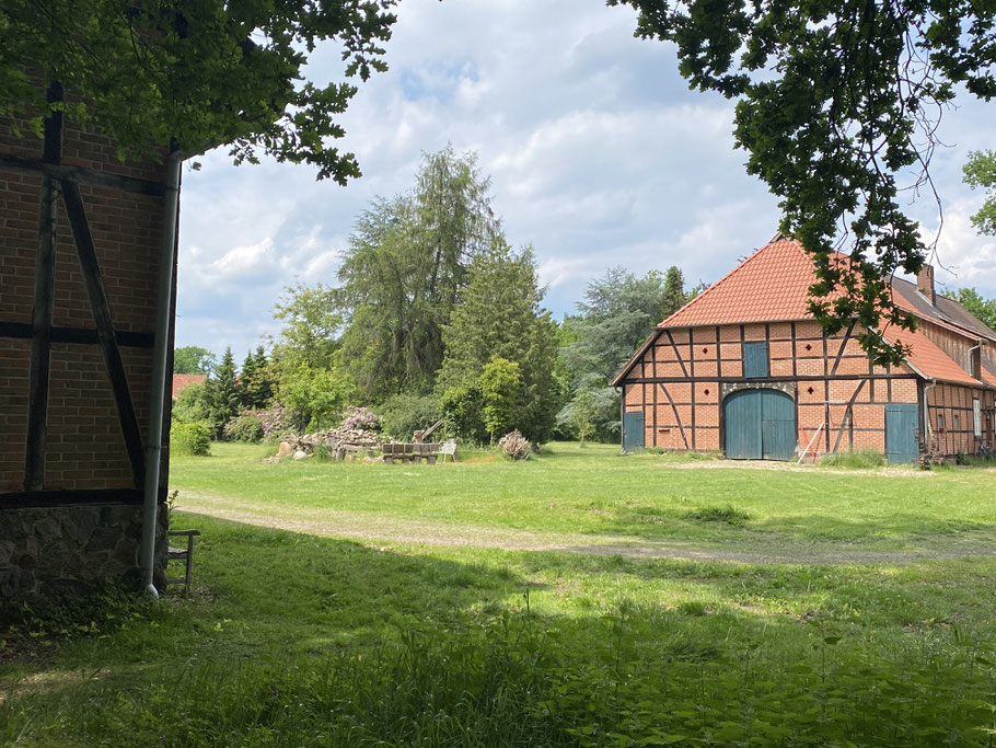 Die Hofstelle mit ihrem typisch niedersächsischen Fachwerkhaus, ihrem alten Eichenbestand und endlosem Blick ins Grüne vermittelt ein Gefühl der Ruhe und Geborgenheit.